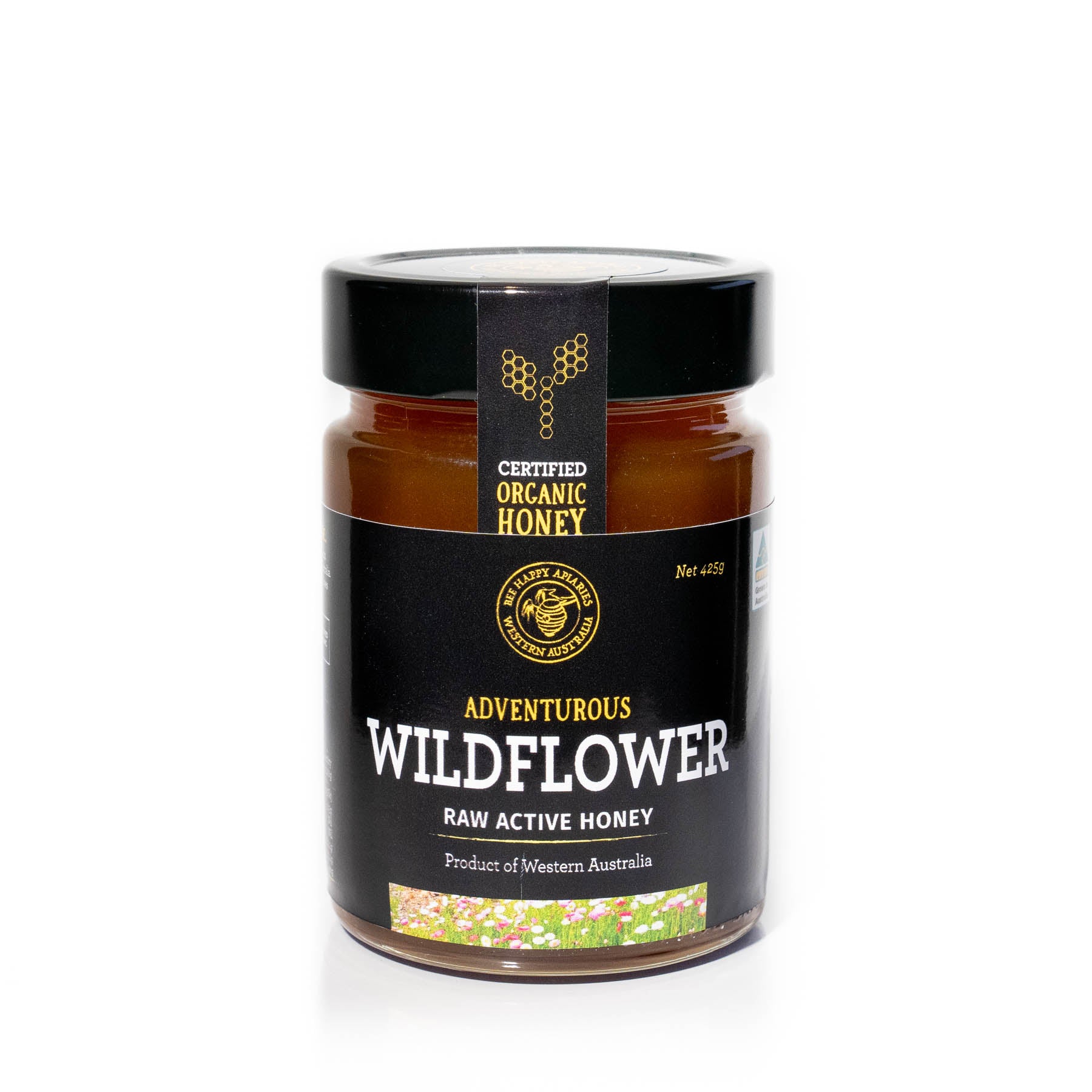 Product Information: Bee Happy Organic Wildflower honey is sourced from the various medley of flowers that blossom along the pristine coastal plains north of Cataby in the early months of spring. Bee Happy honey has not been heat treated or finely filtered thus maintaining its natural nutritional magic.