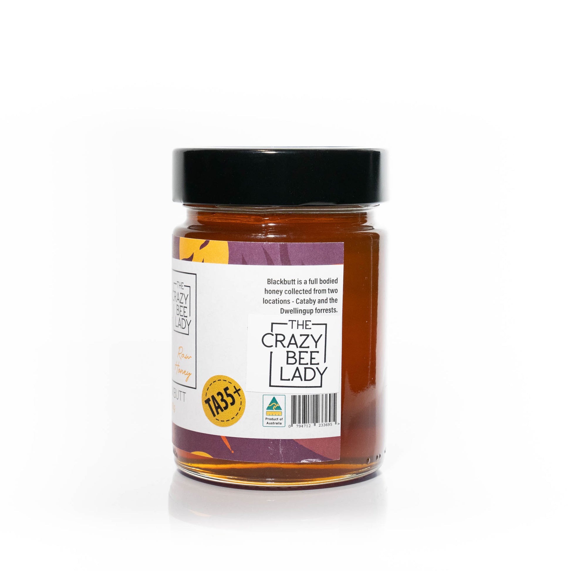 Product Information: Crazy Bee Lady Blackbutt honey is collected from two locations. Coastal Blackbutt comes from Cataby and Forrest Blackbutt comes from the Dwellingup forests. It flowers between the Jarrah and Redgum seasons.