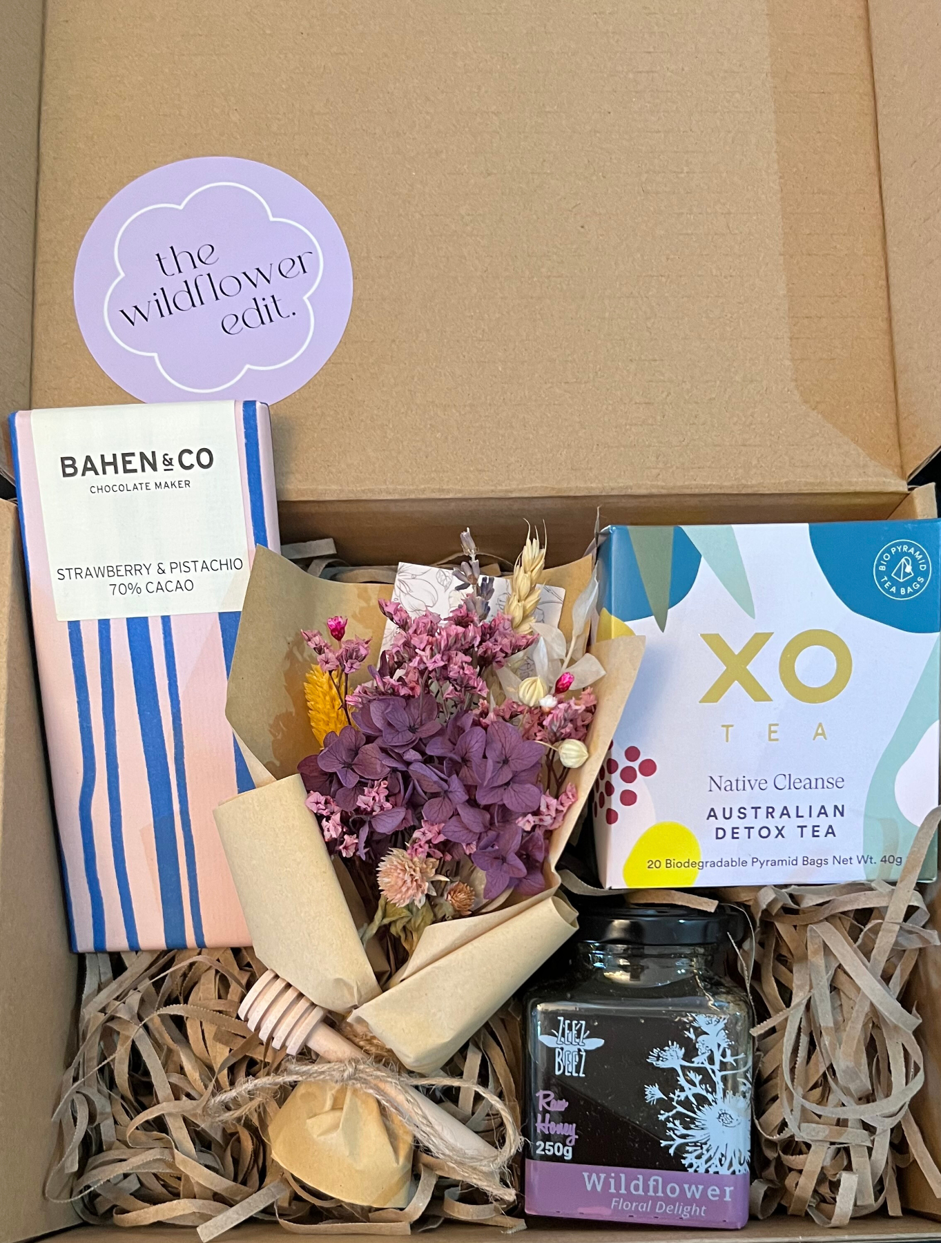 Need add a personalised note or would like to swap to a classic kraft brown box? Just drop us an email at hello@thewildfloweredit.com